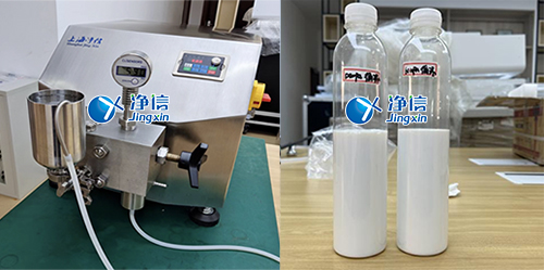 應(yīng)天津大學浙江紹興研究院客戶需求,對樣品油水混合乳液開展實驗操作。此次實驗是在上海松江工廠科研室開展進行的,選用了凈信高壓納米均質(zhì)機JXNANO-15來對樣品油水混合乳液進行實驗操作。