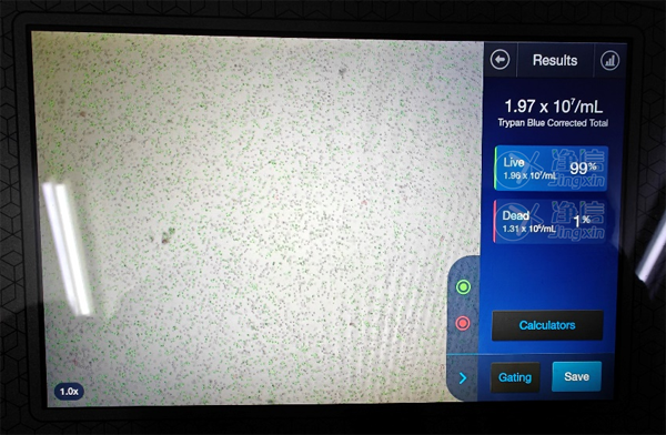 顯微鏡觀察細胞,使用染色緩沖液重懸細胞調整細胞濃度,吸取細胞懸液至流式管中,準備染色