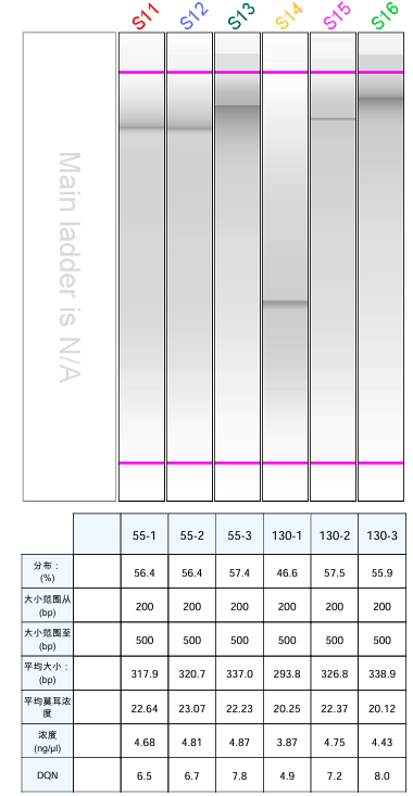 上圖在200-500bp 目的片段最高分別達到57.5%  和58.2%