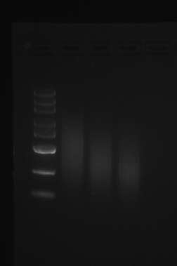 5、程序結束后,取出樣品使用瓊脂糖凝膠電泳進行基因組片段化檢測