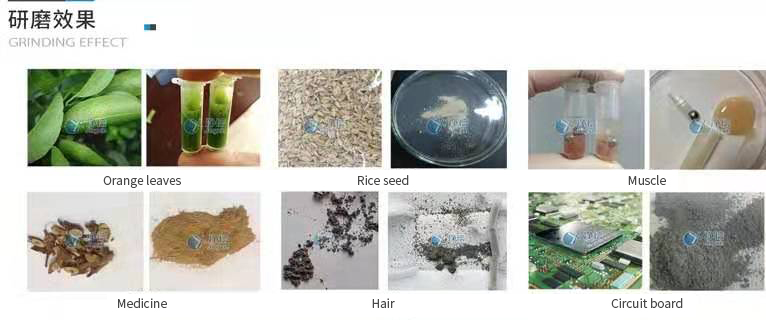 Cryogenic grinder sample range: animal and plant tissues, microorganisms, rock minerals, soil, medicine, chemical polymers, etc.