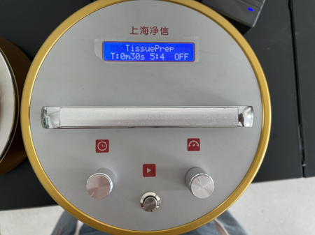 接下來,我們將裝有豬肺組織的研磨罐固定在快速組織研磨儀上,根據(jù)實驗需求設置好研磨時間、轉速等參數(shù)。按下開始按鈕后,研磨儀便開始工作。此時,我們可以清楚地觀察到豬肺組織在研磨罐中逐漸被破碎成細膩的糊狀物,此次的研磨效果良好。
