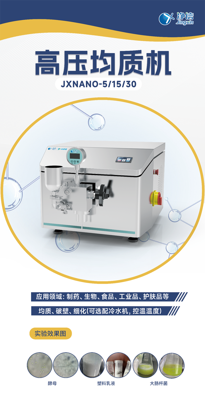 上海凈信高壓均質(zhì)機(jī),可廣泛應(yīng)用于生物工程、制藥行業(yè)、食品工業(yè)、精細(xì)化工、化妝品等行業(yè)。能夠很好的提高實(shí)驗(yàn)效率和數(shù)據(jù)質(zhì)量,解決你的困惑。高壓均質(zhì)機(jī)作為實(shí)驗(yàn)室里的黑科技,為科研事業(yè)提供了強(qiáng)大的技術(shù)支持。它不僅具有好的均質(zhì)效果、操作簡(jiǎn)單安全可靠的特點(diǎn),還具備高效節(jié)能的優(yōu)勢(shì)。相信在未來的科研道路上,高壓均質(zhì)機(jī)將會(huì)發(fā)揮更加重要的作用,為實(shí)驗(yàn)室的小伙伴們帶來更多的驚喜和收獲!