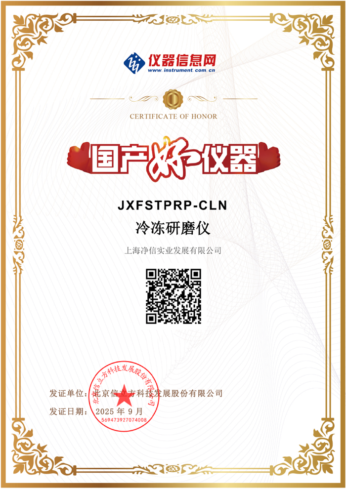 在國產科學儀器崛起的浪潮中,上海凈信實業發展有限公司的兩款“明星產品” ——冷凍研磨儀 JXFSTPRP-CLN與冷凍耐酸堿真空離心濃縮儀 JX-ZLN-EL,憑借優異的性能、可靠的品質,成功入選 “國產好儀器” 榜單。這不僅是對上海凈信技術實力的高度認可,更是國產儀器在科研領域 “硬實力” 的生動體現。
