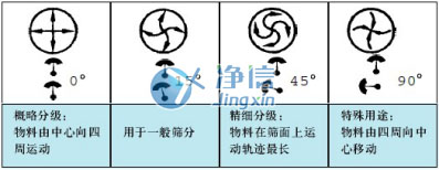 三次元旋振篩,由直立式電機作激振源,電機上端安裝偏心重錘(基準塊),下端安裝可調(diào)節(jié)偏心塊,如下圖所示,當兩側偏心塊向中間合攏,振幅變小;當偏心塊向兩側分離,振幅變大。通過調(diào)節(jié)偏心塊的位置將電機的旋轉運動轉變?yōu)樗健⒋怪薄A斜的三次元運動,通過調(diào)整下端兩偏心塊的夾角大小來控制振幅,把這個運動傳遞給篩面調(diào)節(jié)下端偏心塊的相位角,可以改變物料在篩面上的運動軌跡。
