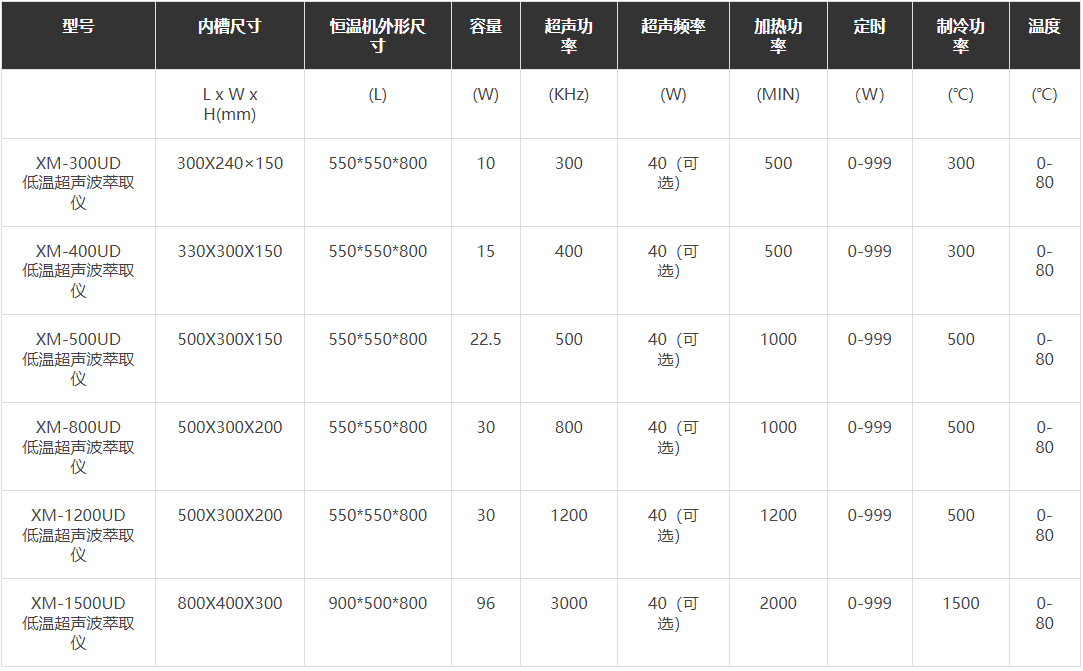 1.精密清洗;2.樣品制備的前處理:液體脫氣、混合、均質(zhì)等;3.中藥材的溶解、顆粒的分散及乳化提取;4.樣品的萃取。液體溫度恒溫控制適合于對(duì)樣品溫度要求較高的實(shí)驗(yàn)。