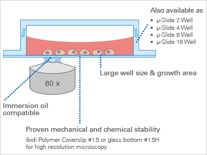 l也可提供玻璃底的載玻片μ-Slide 1 Well?Glass Bottom 適用于特殊顯微鏡應用